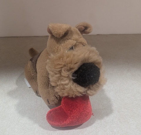 What Airedale doesn't give it's heart? This little Airedale has a fluffy beard and big nose, holds a heart and looking for a home The Airedale measures 4" by 4".