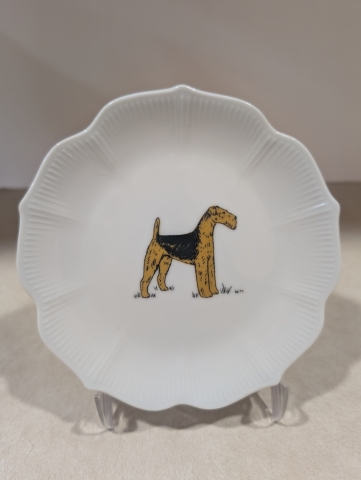 Very delicate edges shape this china plate and an Airedale is featured in the middle of this 6" plate.
