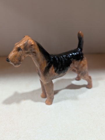 This vintage Royal Doulton Airedale is stunning! It is bone china, made in England and 4" tall. The Royal Doulton stamp is on the paw. Lovely gift or addition to your home decor.