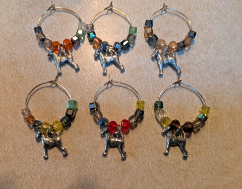 These 6 silver Airedale wine markers have various colorful beads and an Airedale on each.
