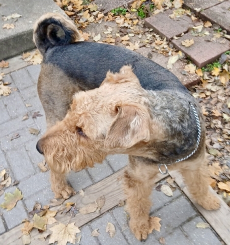 Are you looking for a young, energetic, handsome boy who loves to be by his humans no matter what you are doing? He came into rescue with other Airedales and is currently living with his foster brothers and sisters which includes a cat. He is good around the other dogs and cat and is housebroken. Currently he is getting special treatment due to having hip displaysia. His foster Mom takes him for hydro therapy and loves going for the car ride and all the attention he gets at the vet office. Foster Mom Vickie would be happy to fill you in on what progress he has made.